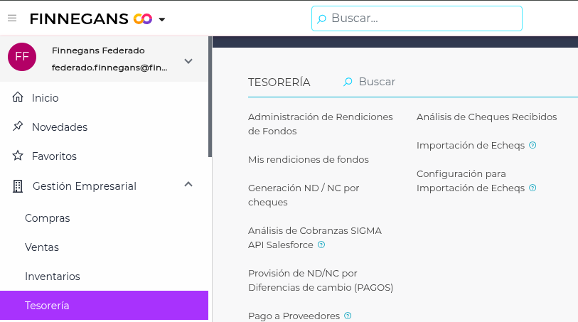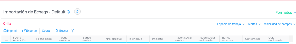 Los Echeqs enviados por mail se verán en una nueva view llamada “Importación de Echeqs” dependiente de la APP de Tesorería.