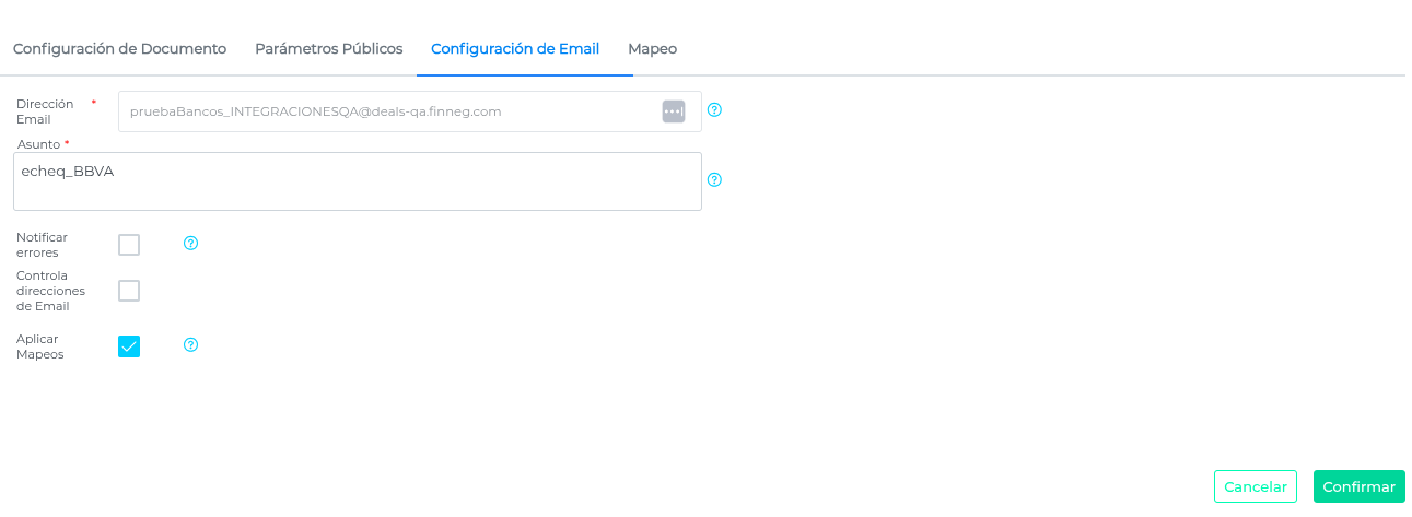 Nota: En este caso vamos a usar el Asunto “echeq_BBVA”.