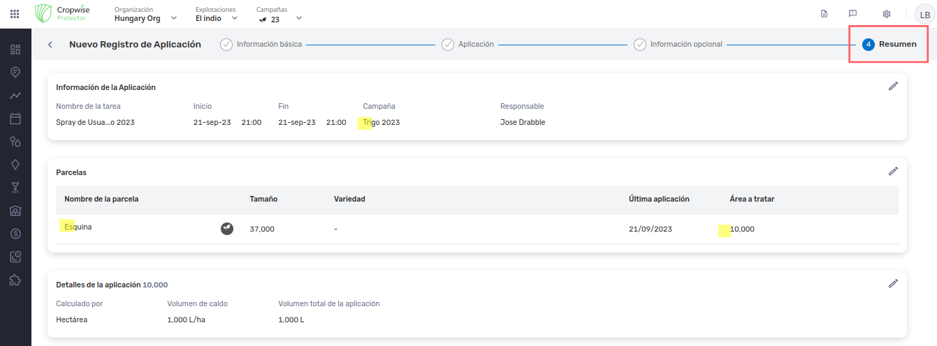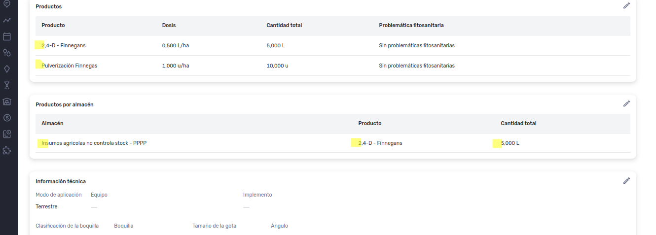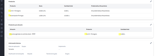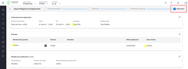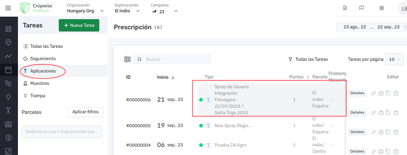 Después que el sistema ejecute los servicios programables las labores podrán detallarse en la plataforma de Cropwise como “Aplicaciones”: