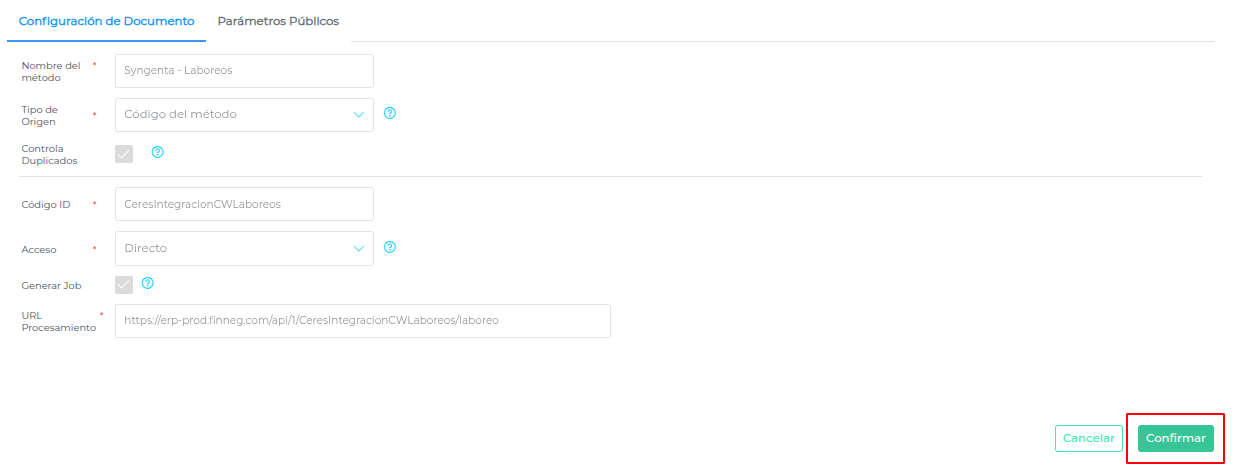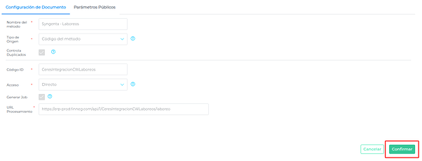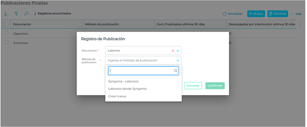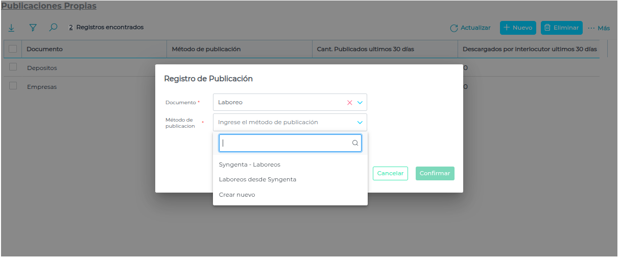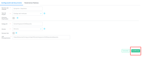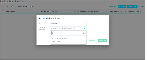 - Definir el documento “Depósitos”, método de publicación “Syngenta - Depósitos”