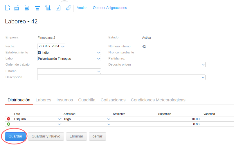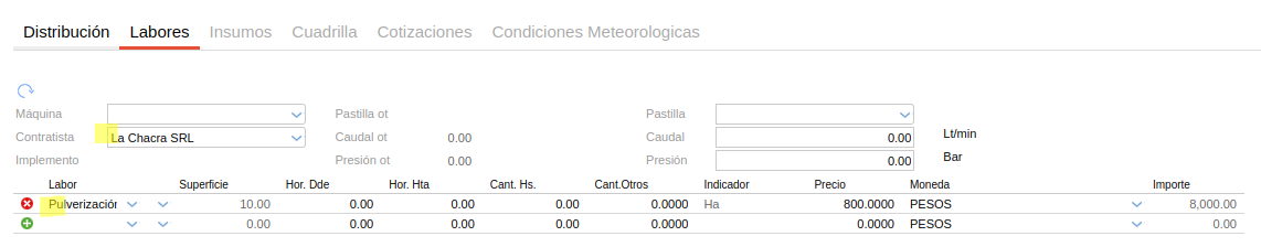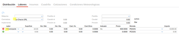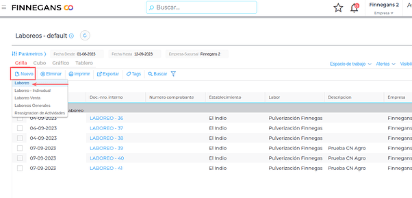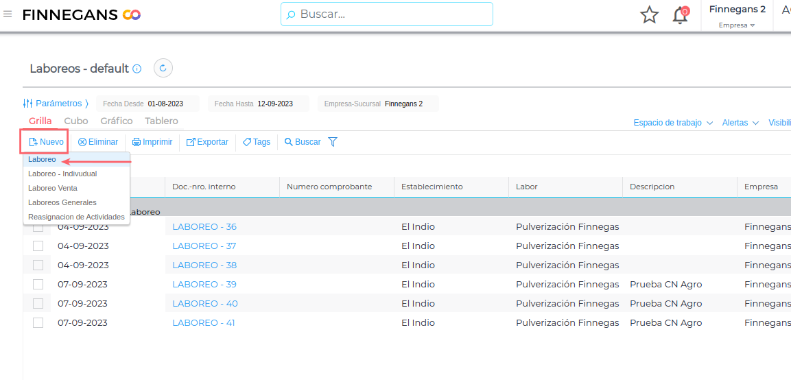 Menú → Gestión Empresarial → Agricultura → Gestión → Laboreos