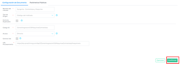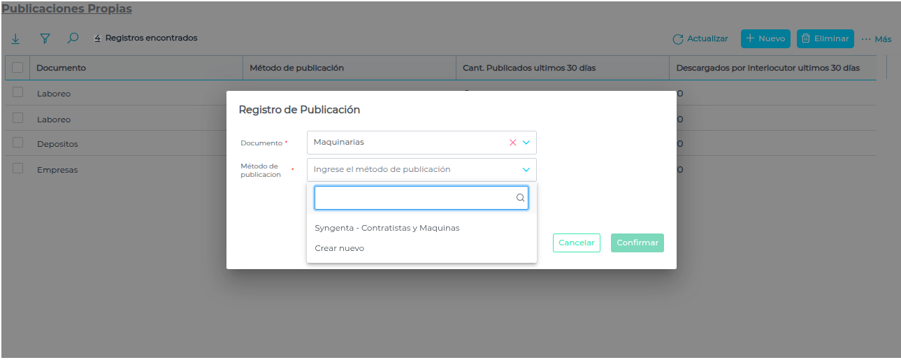 - Definir el documento “Maquinarias”, método de publicación “Syngenta - Contratistas y Maquinas”