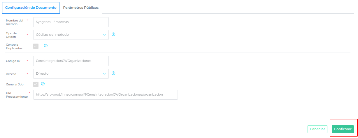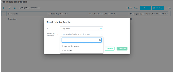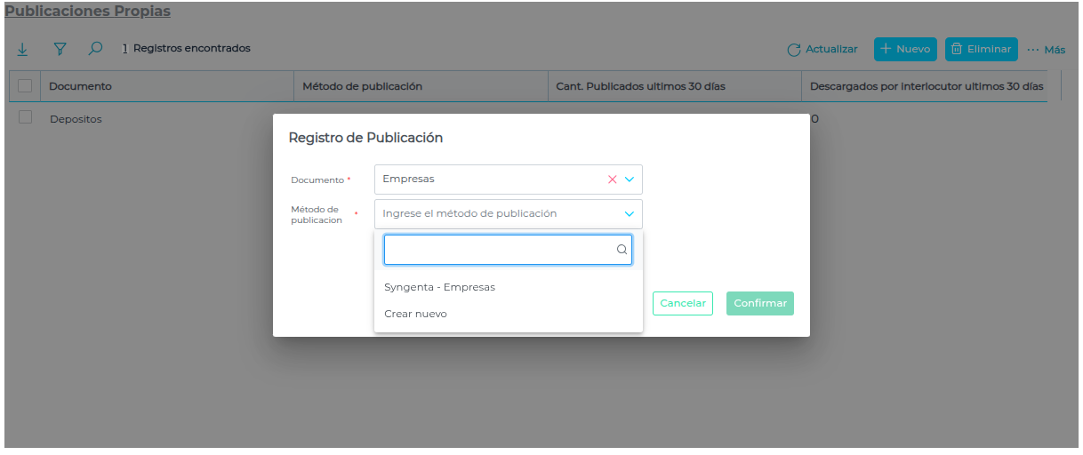 - Definir el documento “Empresas”, método de publicación “Syngenta - Empresas”