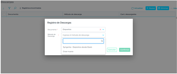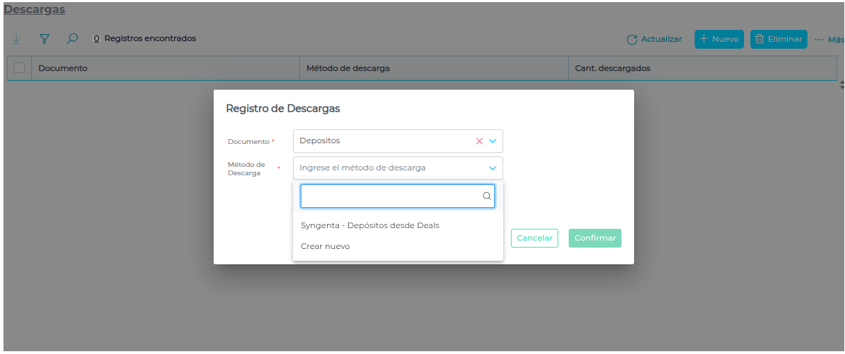 - Definir el documento “Depósitos”, método de descarga “Syngenta - Depósitos desde Deals”