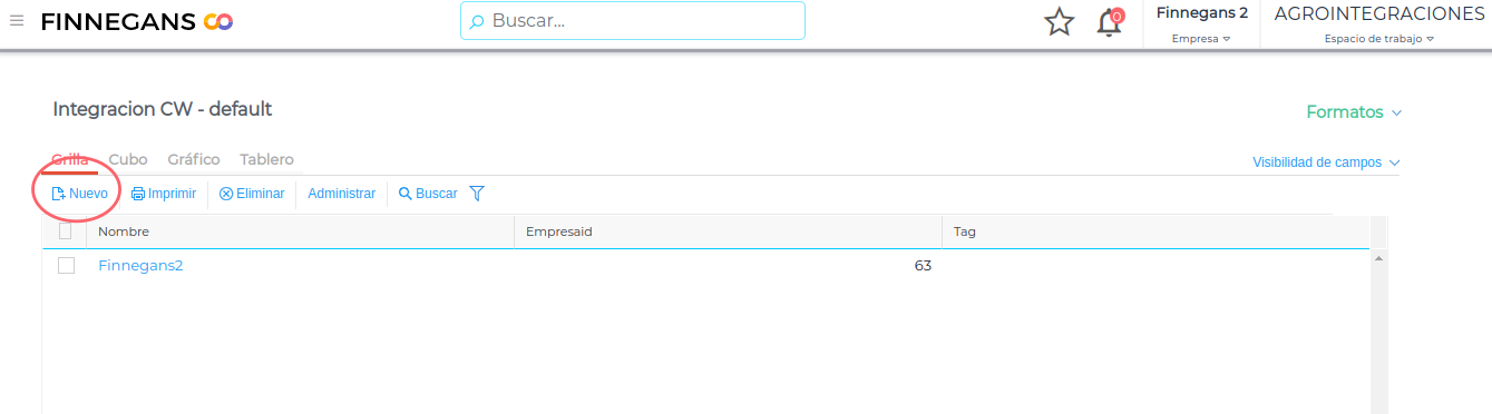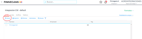Desde Finnegans GO el usuario administrador accede en la empresa que se va a asociar con Cropwise, el número de CUIT debería coincidir con el definido en la plataforma de Cropwise.