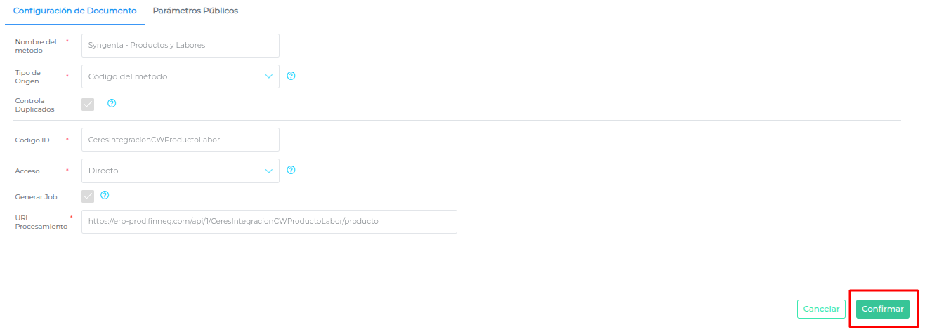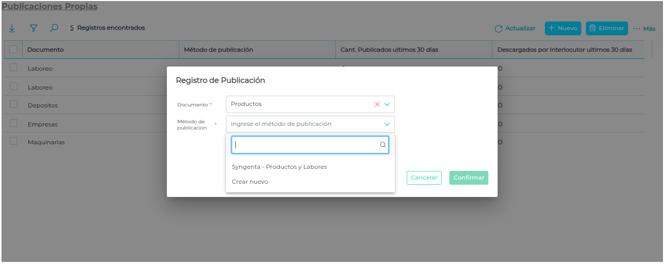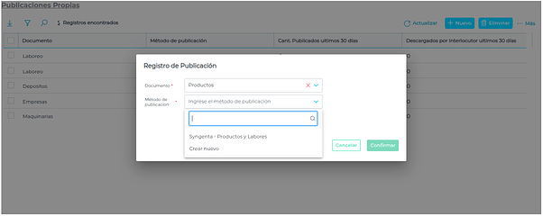 - Definir el documento “Productos”, método de publicación “Syngenta - Productos y Labores”