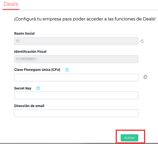 En “Configurar empresa” activar la empresa y CFU. Para esto, hacer click en el botón “Activar”