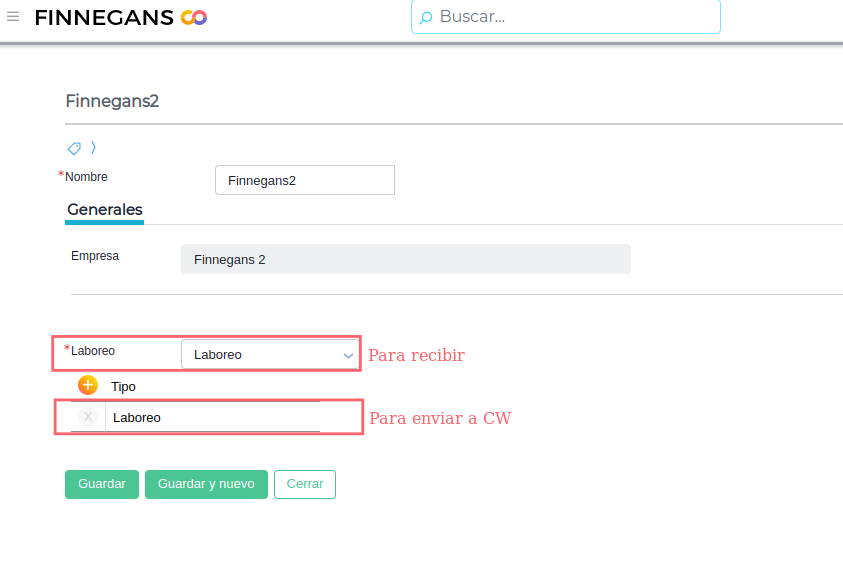 En la vista ‘Integración CW’ desde el botón nuevo agrega los documentos de laboreos que se desean enviar y recibir (no agregar más de una relación por empresa).