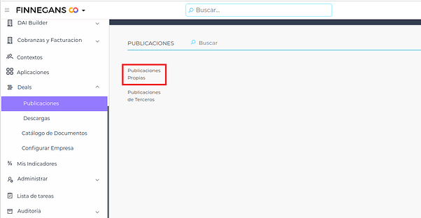 Menú desplegable > Deals > Publicaciones > Publicaciones Propias