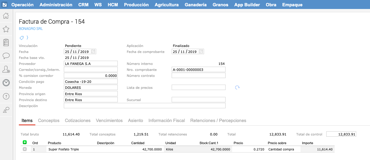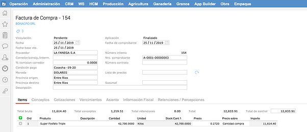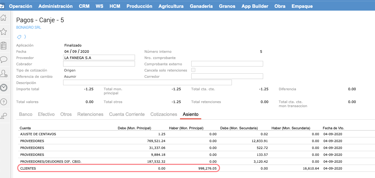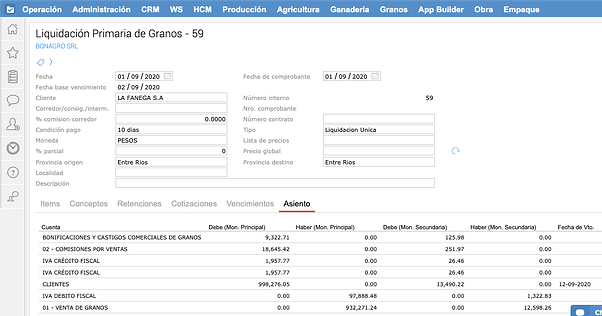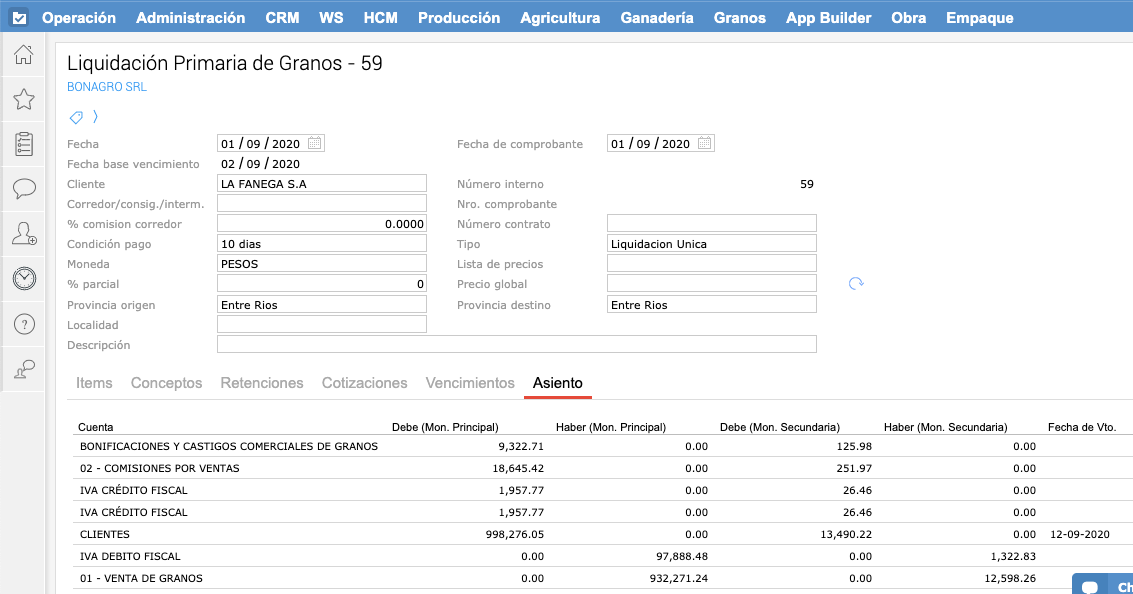 La liquidación de granos que nos emite el canjeador la cargamos en el sistema como una liquidación de venta de granos (ahora el canjeador también pasa a ser cliente/proveedor).