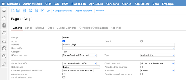 El sistema tiene variedad de opciones disponibles para gestionar las operaciones de canje, en este instructivo detallaremos una de las formas más comunes y prácticas para llevar a cabo la carga de documentos, control de cuentas corrientes, saldos y aplicaciones entre los documentos involucrados.