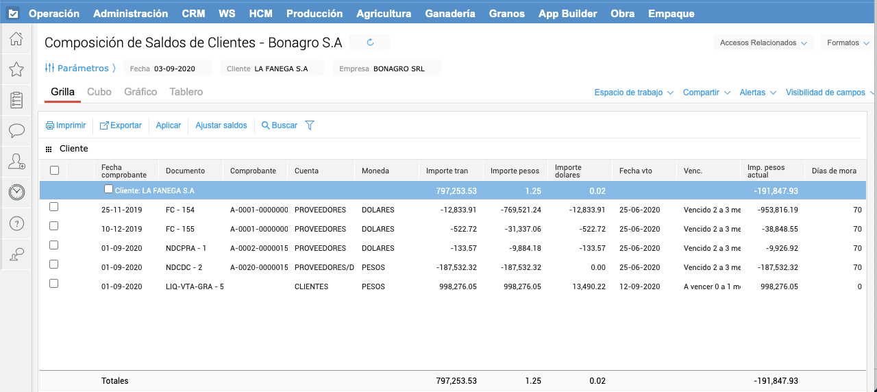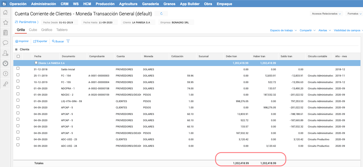 7. Verificar saldos nuevamente en la cuenta corriente del cliente/proveedor.