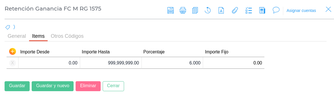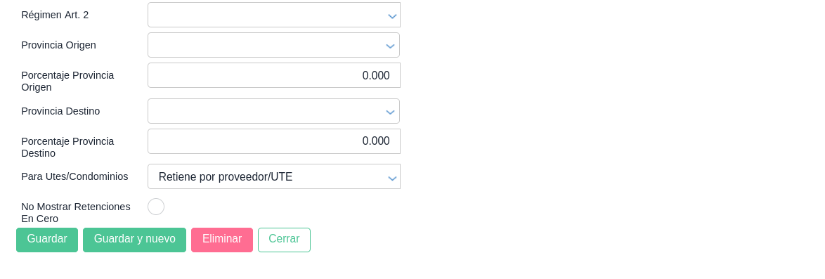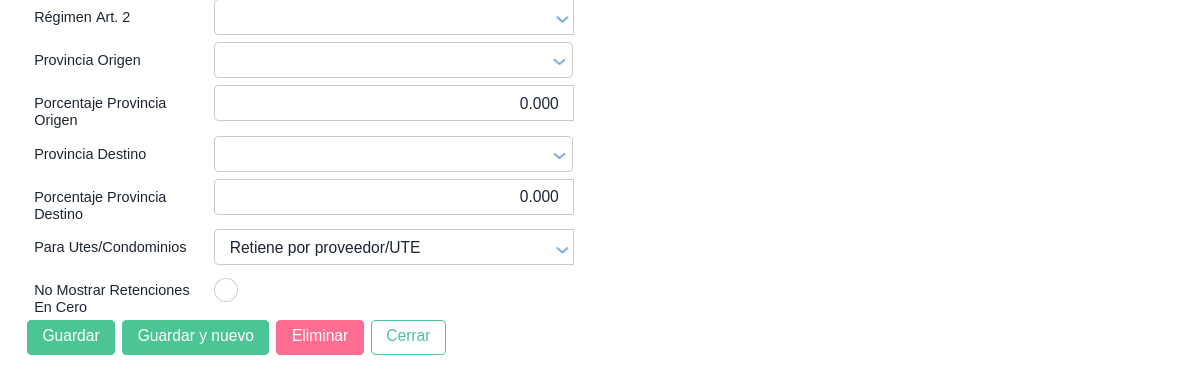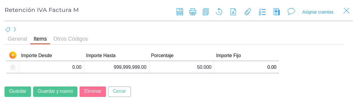 Configurar el tipo de retención y concepto de retención como se indica a continuación: