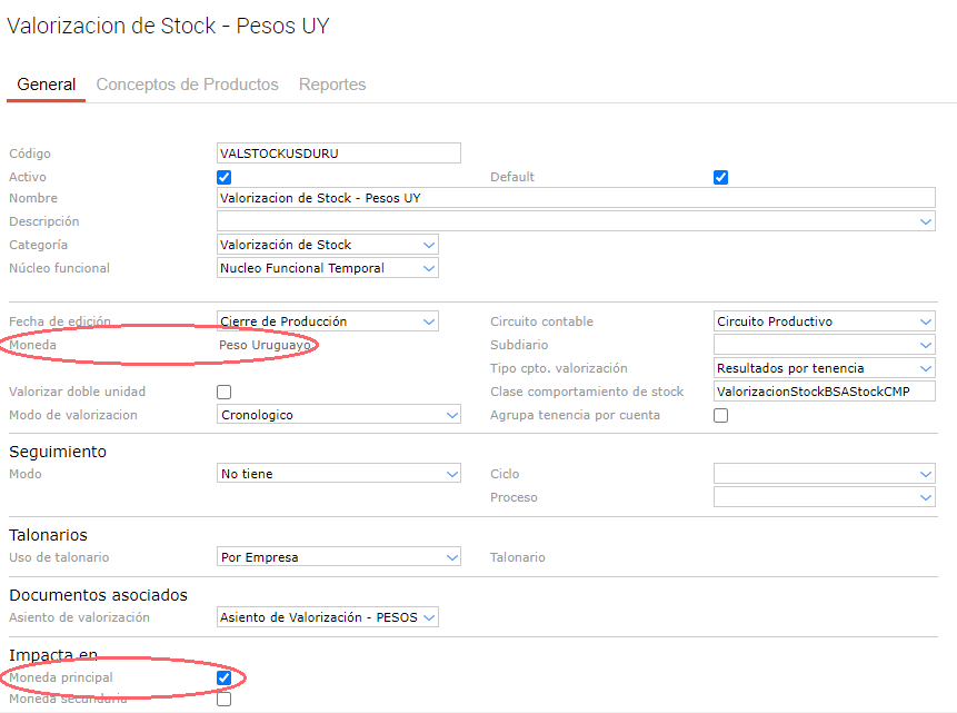 Esto te va a permitir configurar correctamente la moneda que necesitás para realizar la valorización.