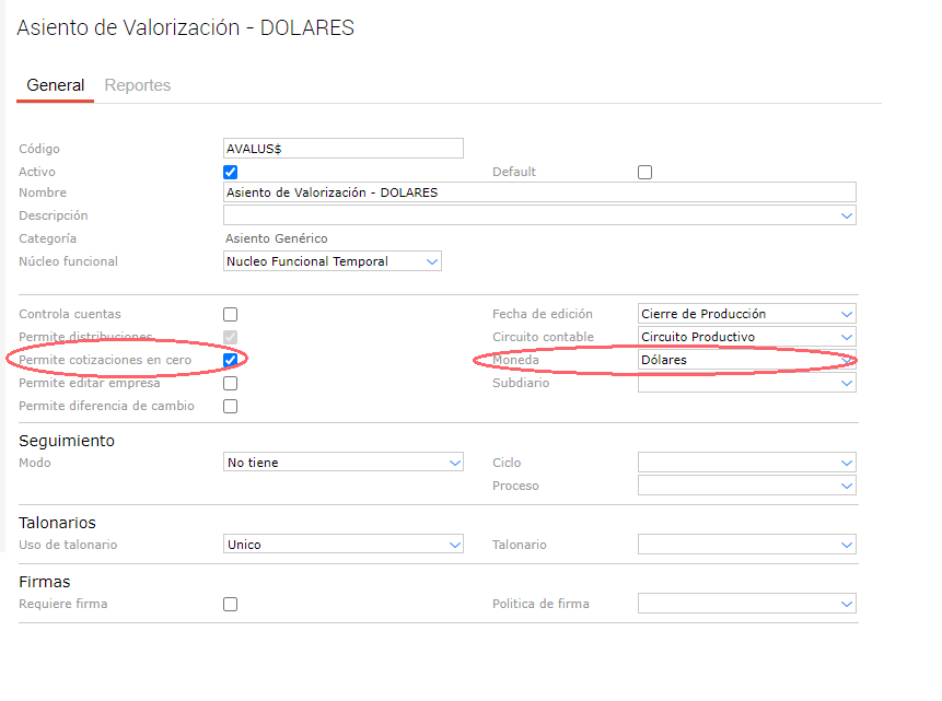 La moneda configurada dentro de esta valorización debe ser dólares y el documento tiene que tener el check de impacta en moneda secundaria.