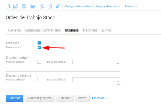 En situaciones donde la OT esté configurada para mover stock, el campo “Cantidad a Entregar” será el valor que se utilizará para generar el movimiento de inventario. En este caso, el movimiento de stock se efectuará hacia el depósito de reserva, según la cantidad especificada en dicho campo. Es recomendable utilizar esta configuración como una buena práctica, ya que facilita un mejor control de los insumos entregados y garantiza que la cantidad indicada sea la que efectivamente se mueva de inventario.