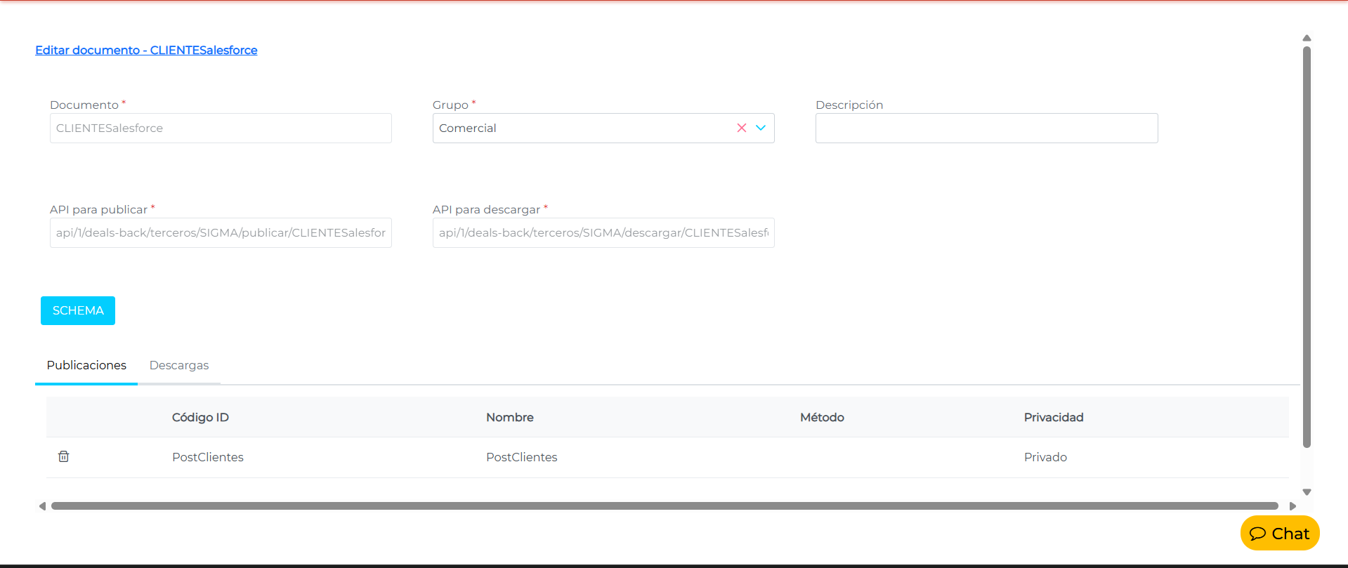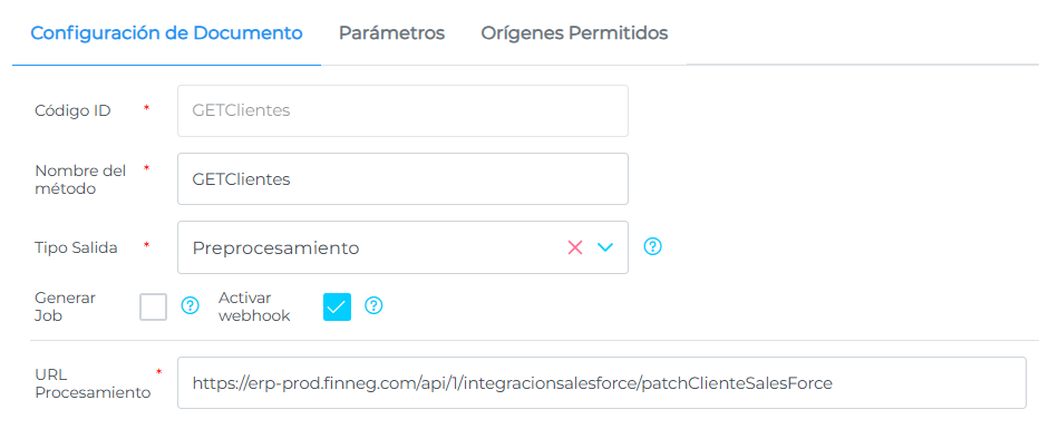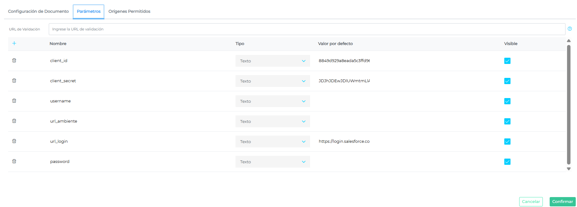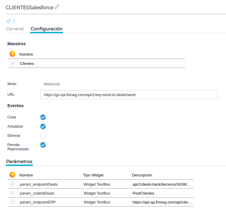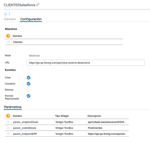 A) “param_endpointDeals” → endpoint de publicación del documento configurado en Deals. Ejemplo: api/1/deals-back/terceros/(Nombre del espacio de trabajo)/publicar/CLIENTESalesforce