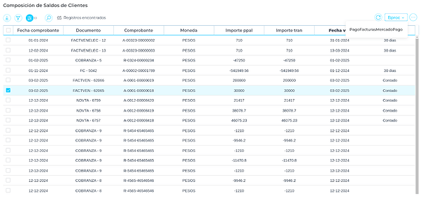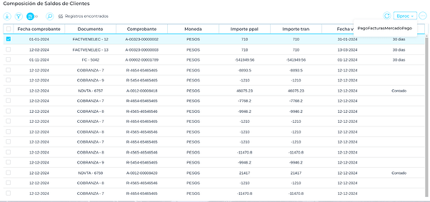 5- Ingresar al informe de Composición de Saldos. En el mismo podrá visualizar todas sus facturas pendientes de pago con su correspondiente información asociada.