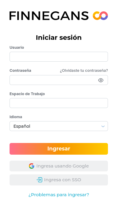 1- Loguearse en Finnegans en el Espacio de Trabajo al que fue invitado: Finnegans - Inicio de sesión