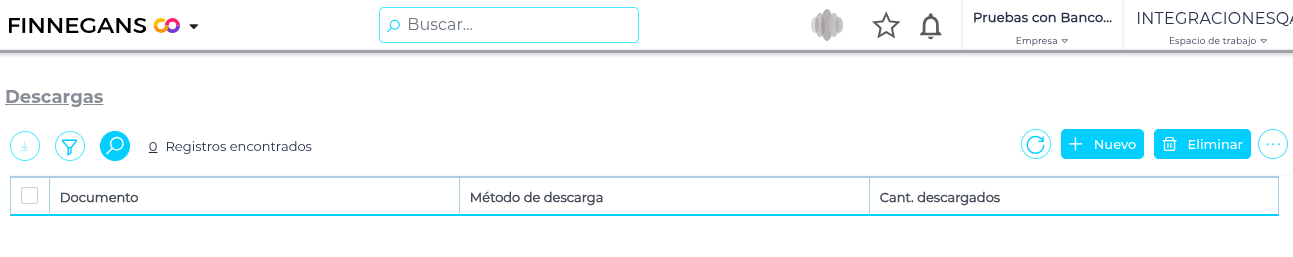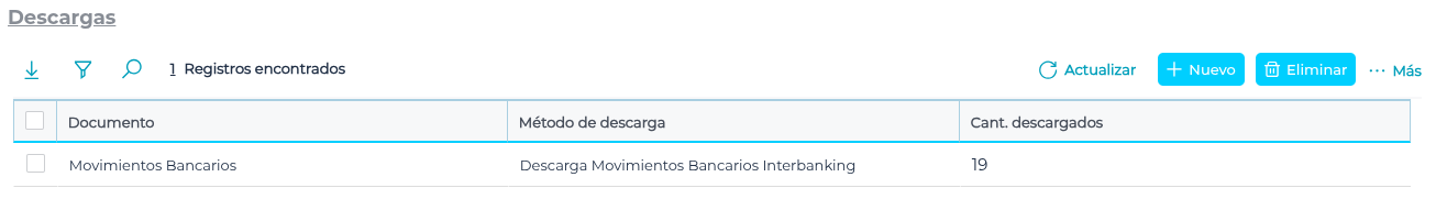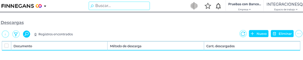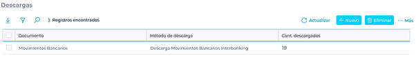 2-En la grilla Descargas se ven los métodos activados en ese espacio de trabajo. Para activar uno método, presionamos el botón “Nuevo”