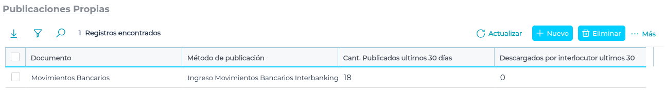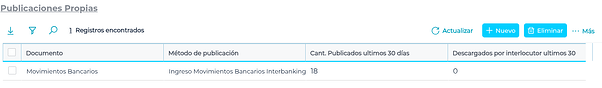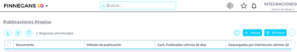 2-En la grilla de Publicaciones Propias se ven los métodos activados en ese espacio de trabajo. Para activar uno método, presionamos el botón “Nuevo”