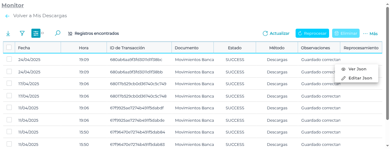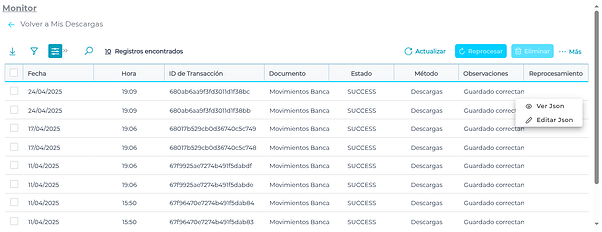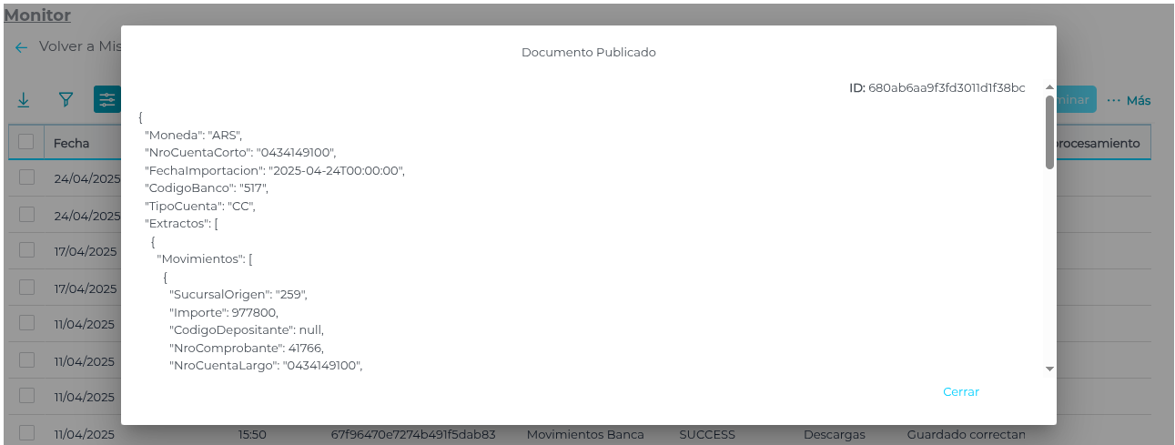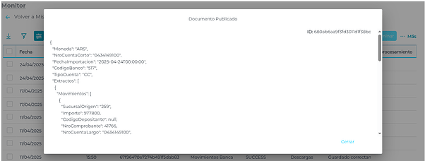 Uno de los puntos de control de la integracion es la visualizacion de los extractos en el Monitor de Deals.
