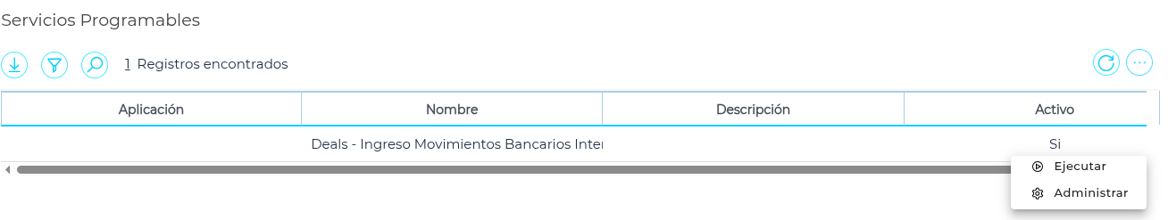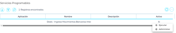 2-En la grilla buscar la entrada llamada “Deals - Ingreso movimientos bancarios Interbanking” y presionar los 3 puntos a la derecha.