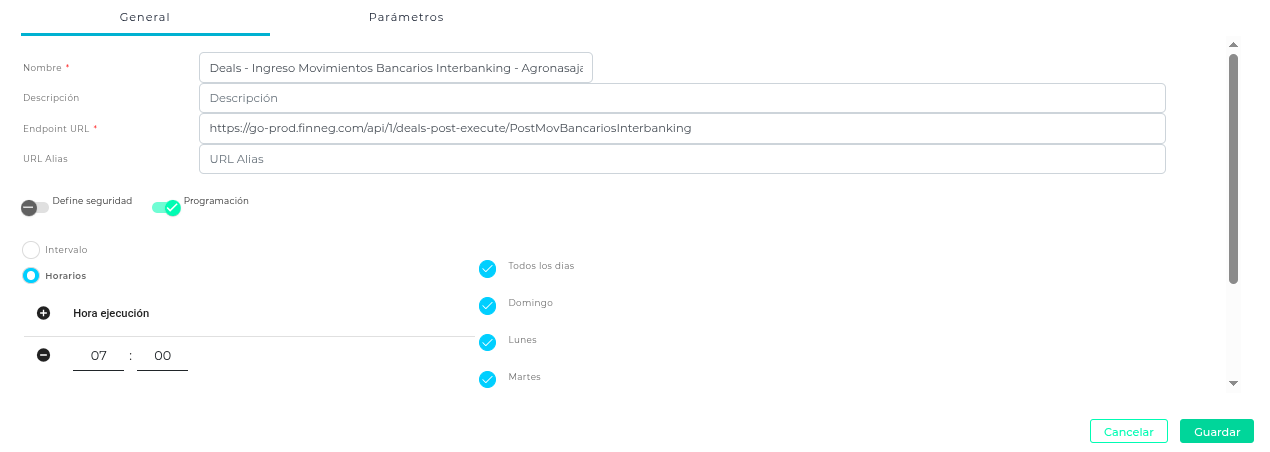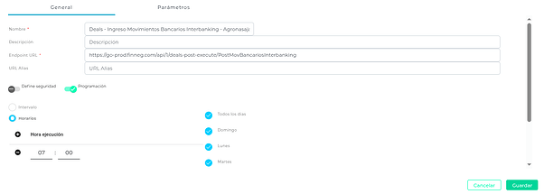 Nota: En este caso vamos a activar el método de Get “Descarga Movimientos Bancarios Interbanking”.