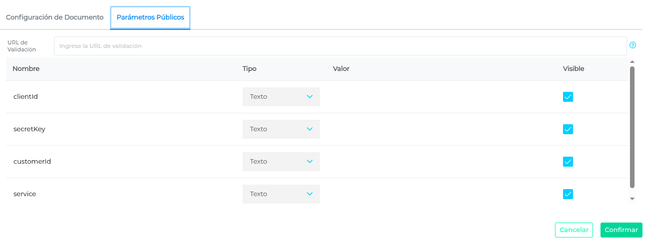 Los campos requeridos son “clientId”, “secretKey” , “customerId”y “service”.