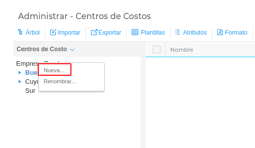 - Posicionarse en el árbol donde se desean crear los niveles → hacer clic con el botón derecho del mouse y seleccionar la opción “nueva”
