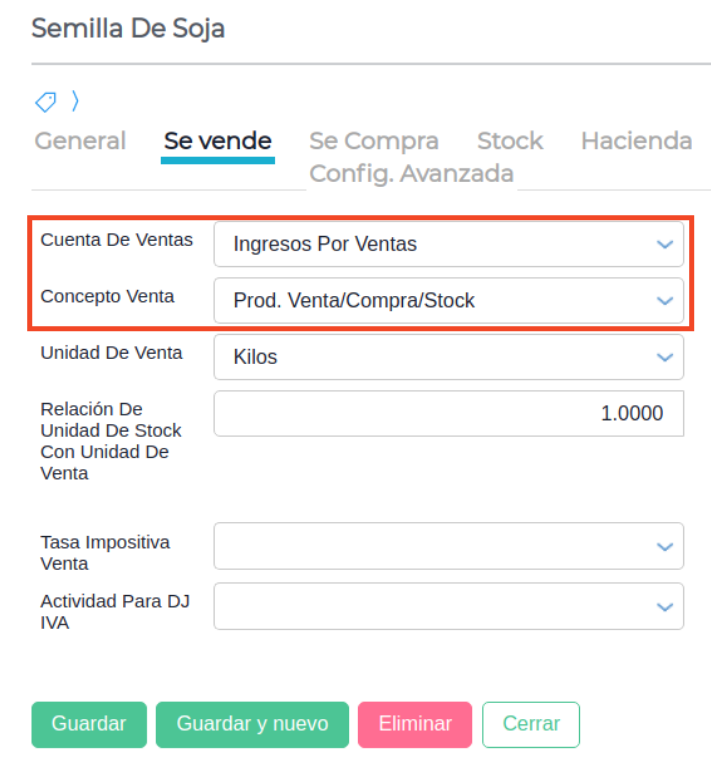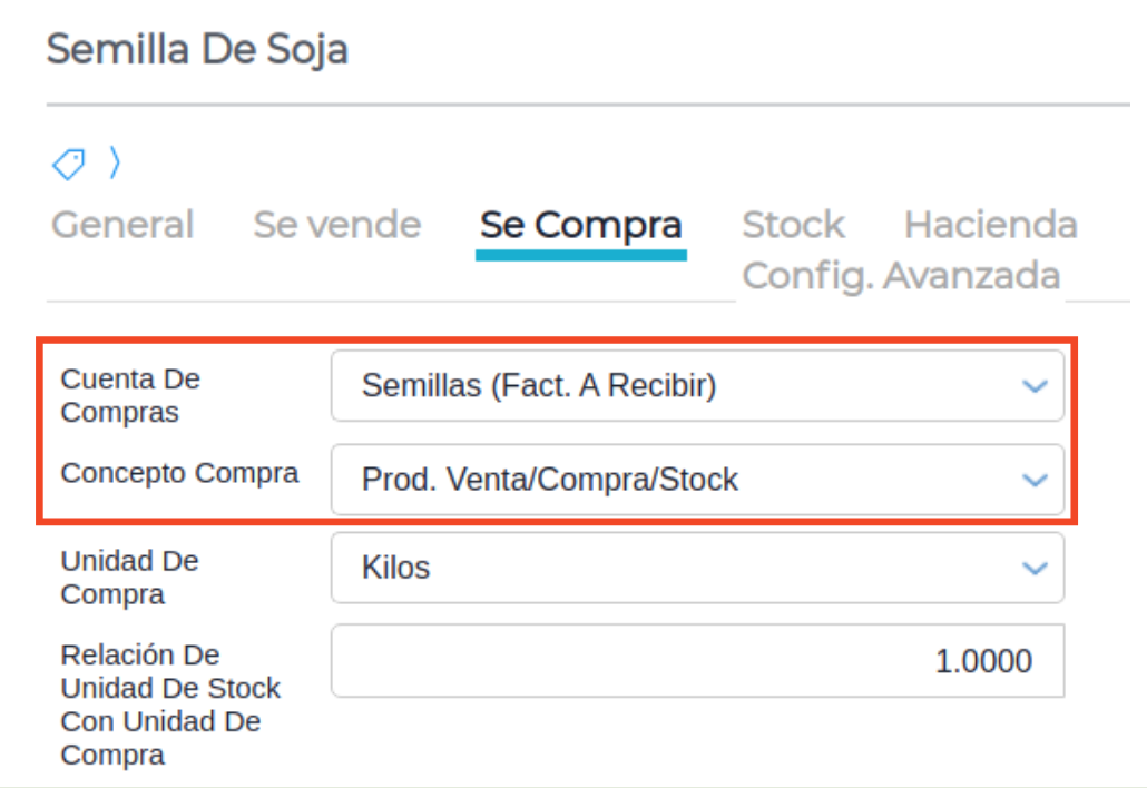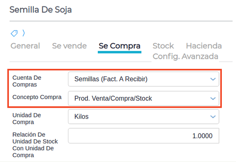 - En las solapas “Se compra” y “Se vende” indicar una cuenta y un concepto correspondiente para cada una.