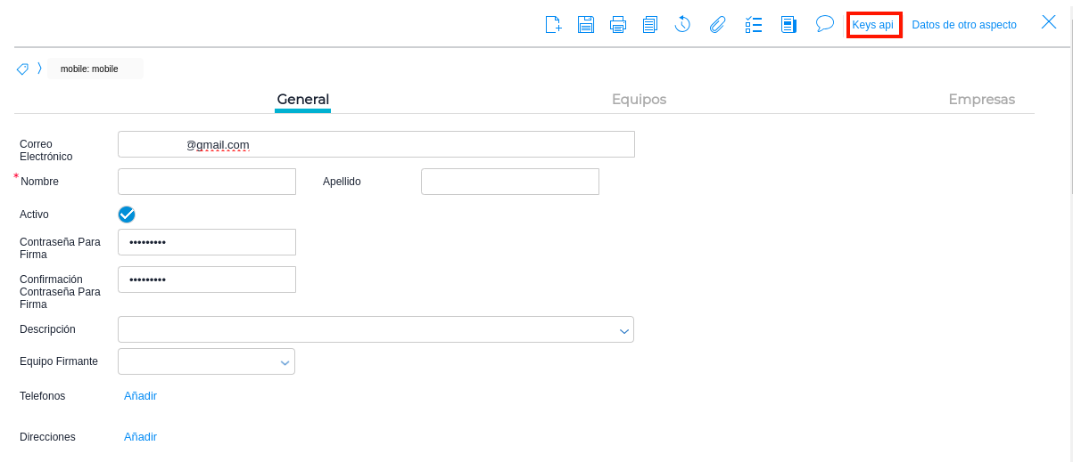 Luego presionar sobre el botón “Keys api” y generar Token/keys