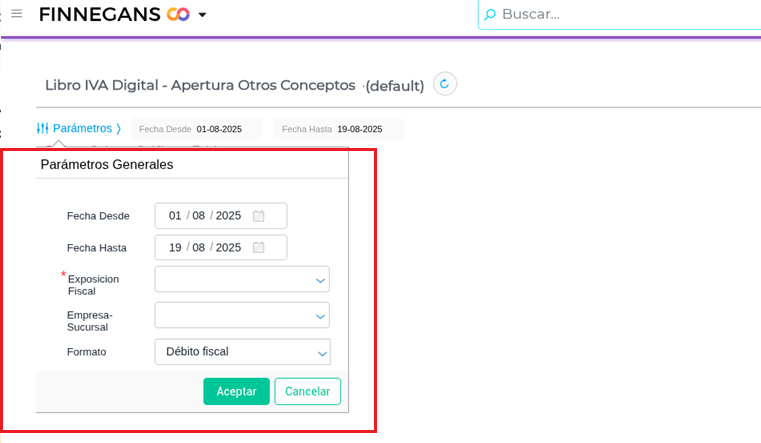 Exposición Fiscal: seleccionar el nombre de la exposición fiscal.