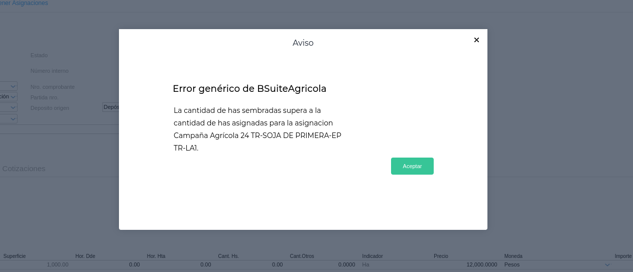 "Error genérico de BSuiteAgricola