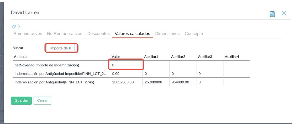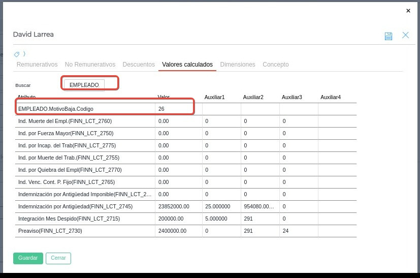 También se puede revisar el código desde la liquidación en la solapa de “valores calculados”