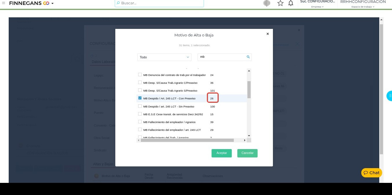 Para verificar el código de baja con el que cuenta el colaborador podemos revisar el mismo en su legajo.