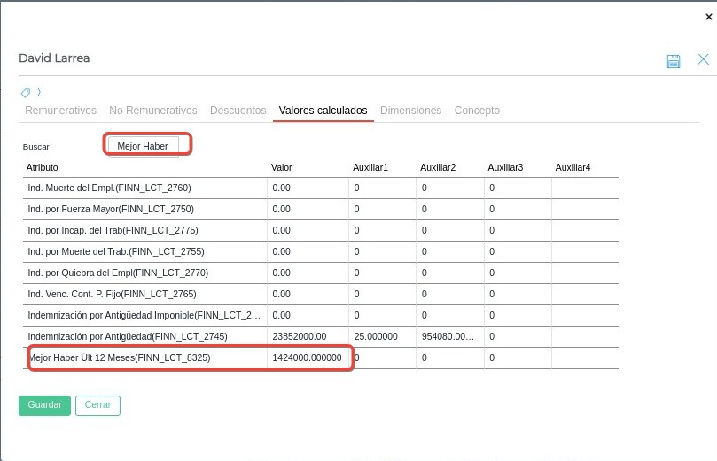 Para saber qué valor tiene le mejor haber de los últimos 12 meses debemos buscar el concepto “Mejor Haber Últ 12 Meses”.