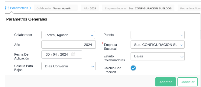 6- Para que los días se emitan de manera fraccionada con decimales se debe hacer clic y tildar