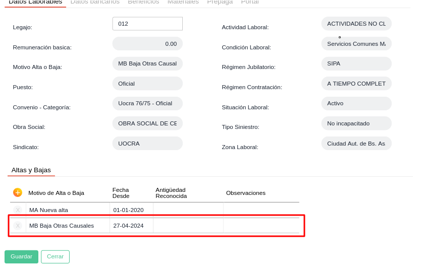 1- Ingresar a Gestión de talento humano → Administración del colaborador → Colaboradores → Buscar el legajo → Cargar la baja en la solapa “Motivo de alta o baja”.