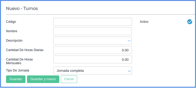 En esta entrada explicaremos cómo configurar un turno en el sistema para determinar el tipo de jornada de los colaboradores.