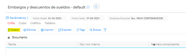 Ingresar al Menú → Gestión de Talento Humano → Liquidación de Sueldos → Novedades → Embargos y Descuentos.