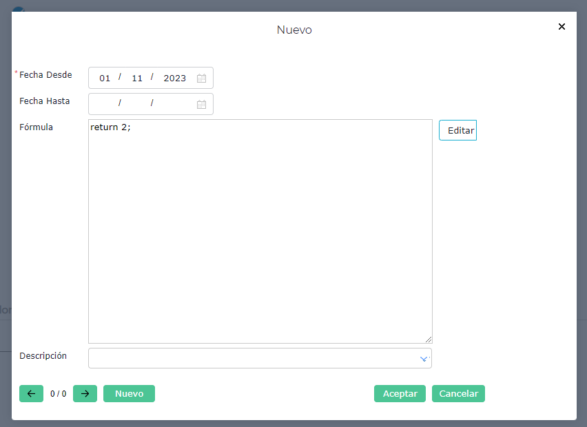 Fecha Hasta: Fecha límite de la configuración (opcional).