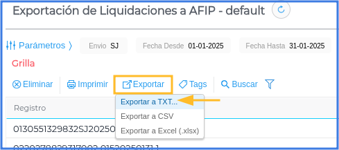 Exportación de liquidaciones a ARCA