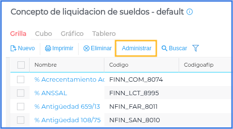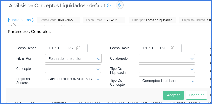 Completar los parámetros seleccionando como tipo de concepto Conceptos liquidables.