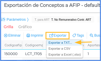 Exportación de conceptos a ARCA