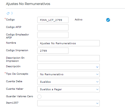 Es importante tomar como modelo un concepto que opere de manera similar al que se precisa crear, por ejemplo, si el concepto nuevo es no remunerativo, duplicar el concepto Ajustes no remunerativos. -