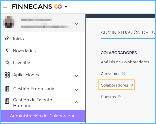 Ingresar al menú → Gestión de Talento Humano → Liquidación de Sueldos → Administración del Colaborador → Colaboradores.