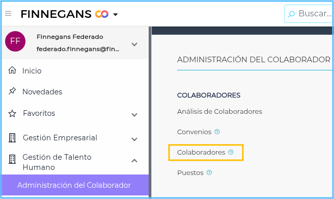 Ingresar al menú → Gestión de Talento Humano → Administración del Colaborador → Colaboradores.