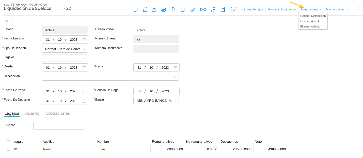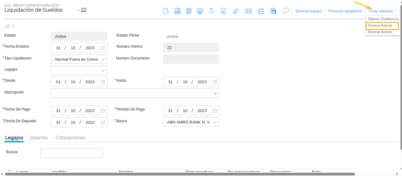 En esta entrada explicaremos a cómo generar el asiento de sueldos de una liquidación finalizada.