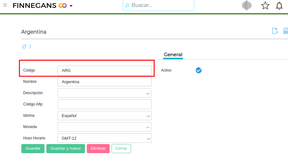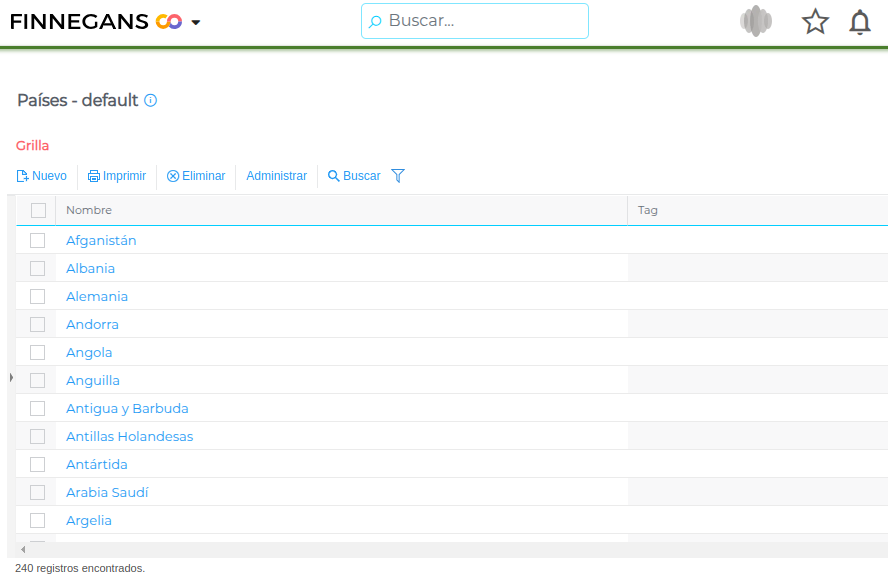 - Acceder al maestro cliqueando en el botón Países.